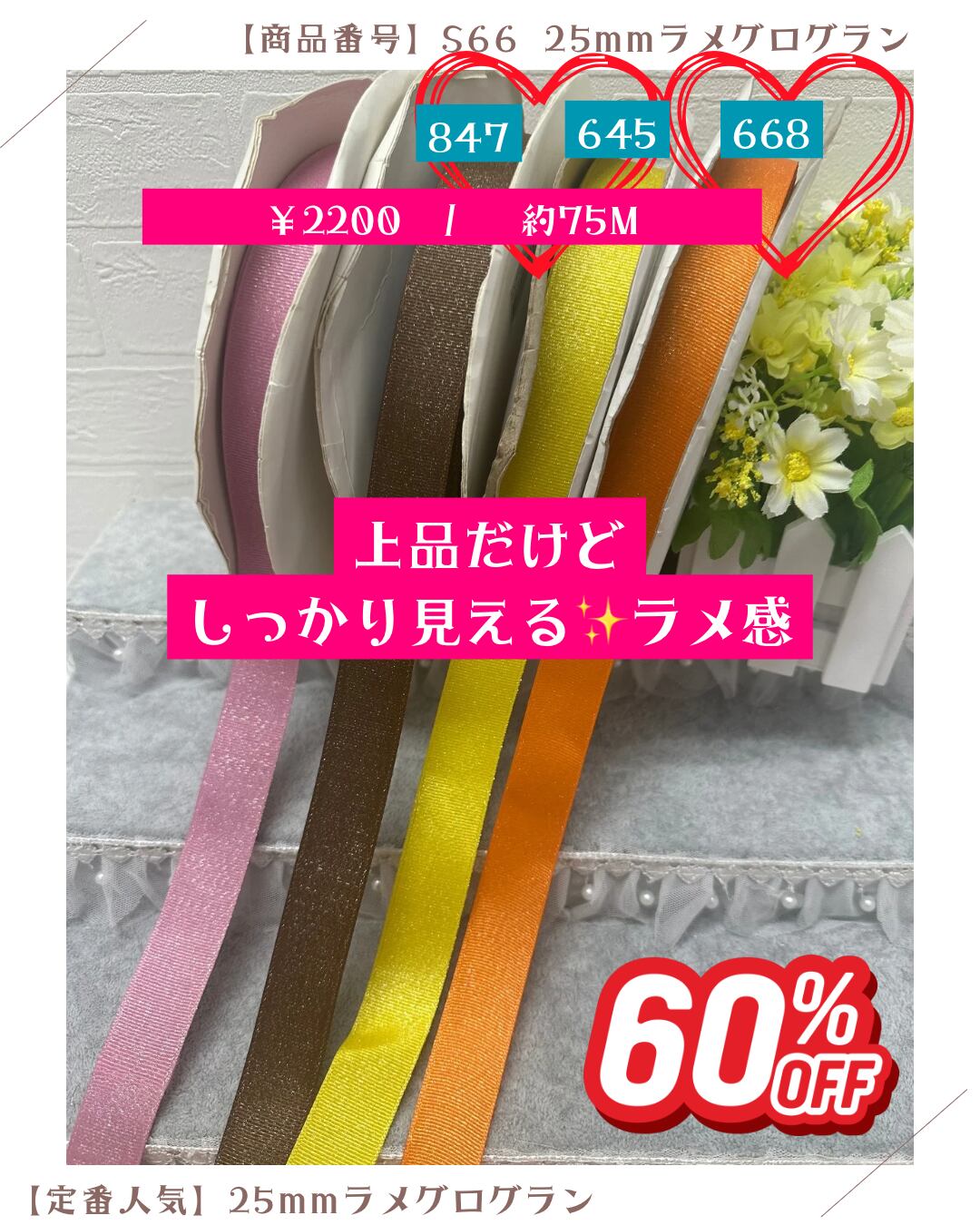 847/645/668【人気】25mmラメグログランリボン