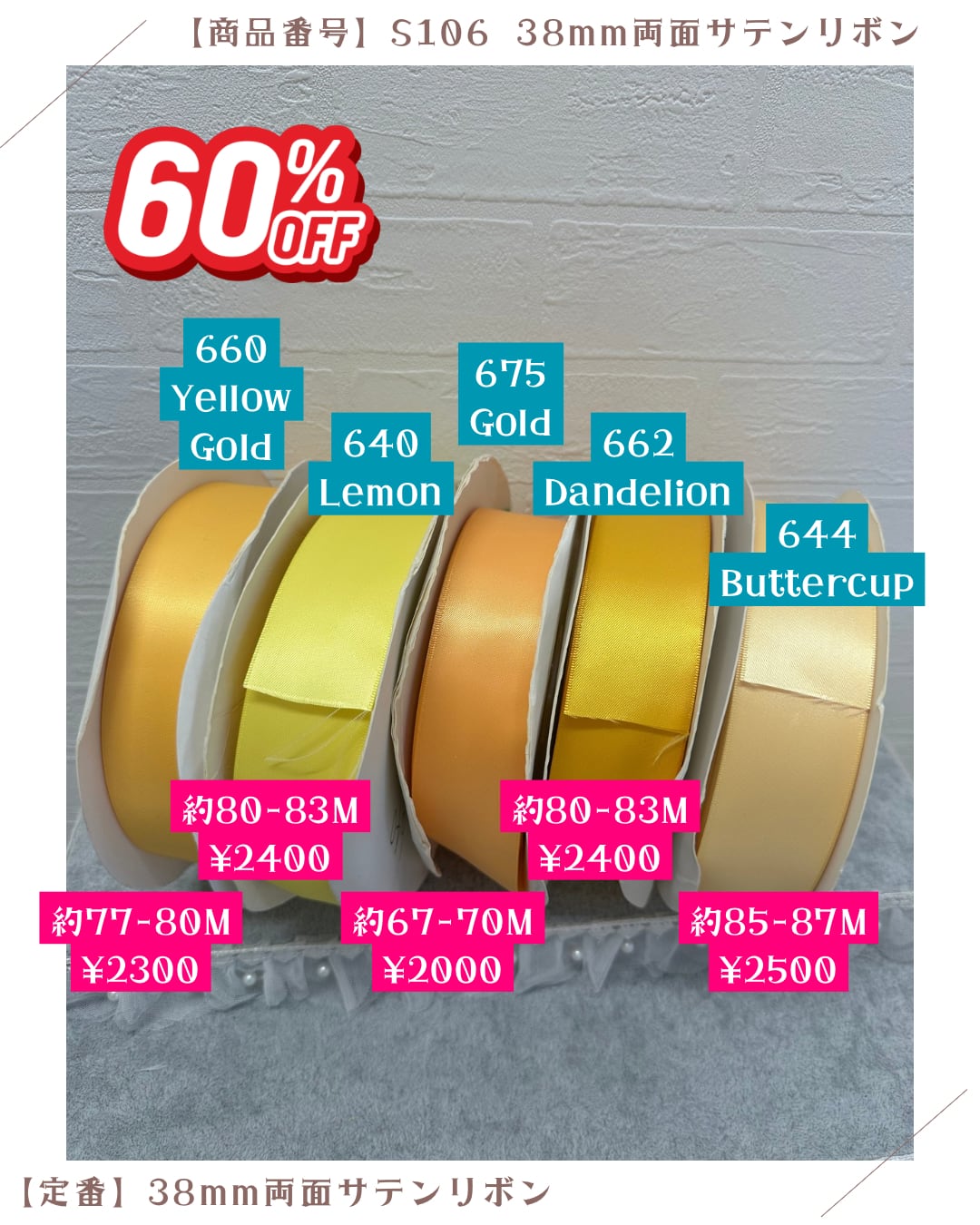 660 Yellow Gold【定番】38mm無地両面サテンリボン
