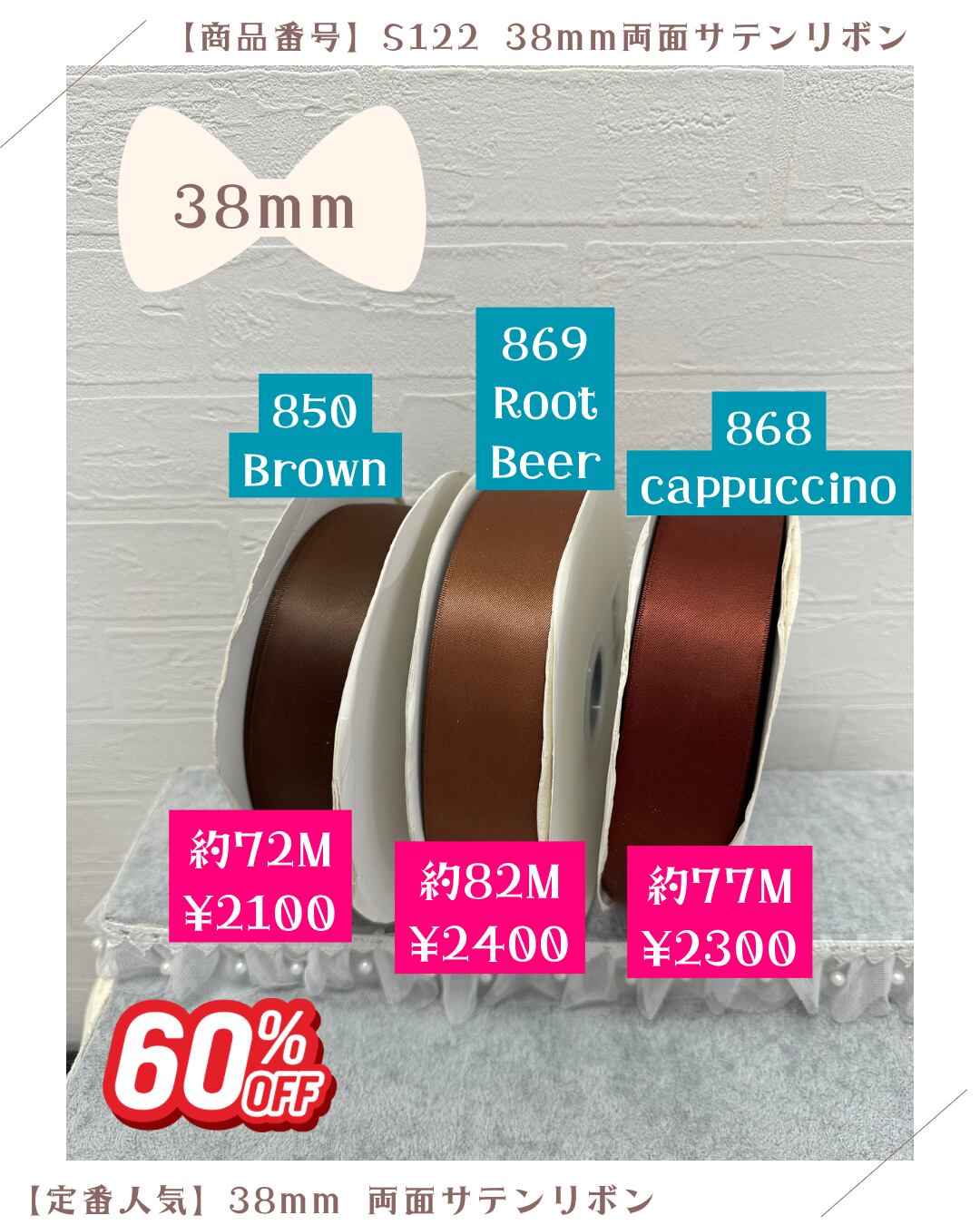 868 cappuccino【定番】38mm無地両面サテンリボン