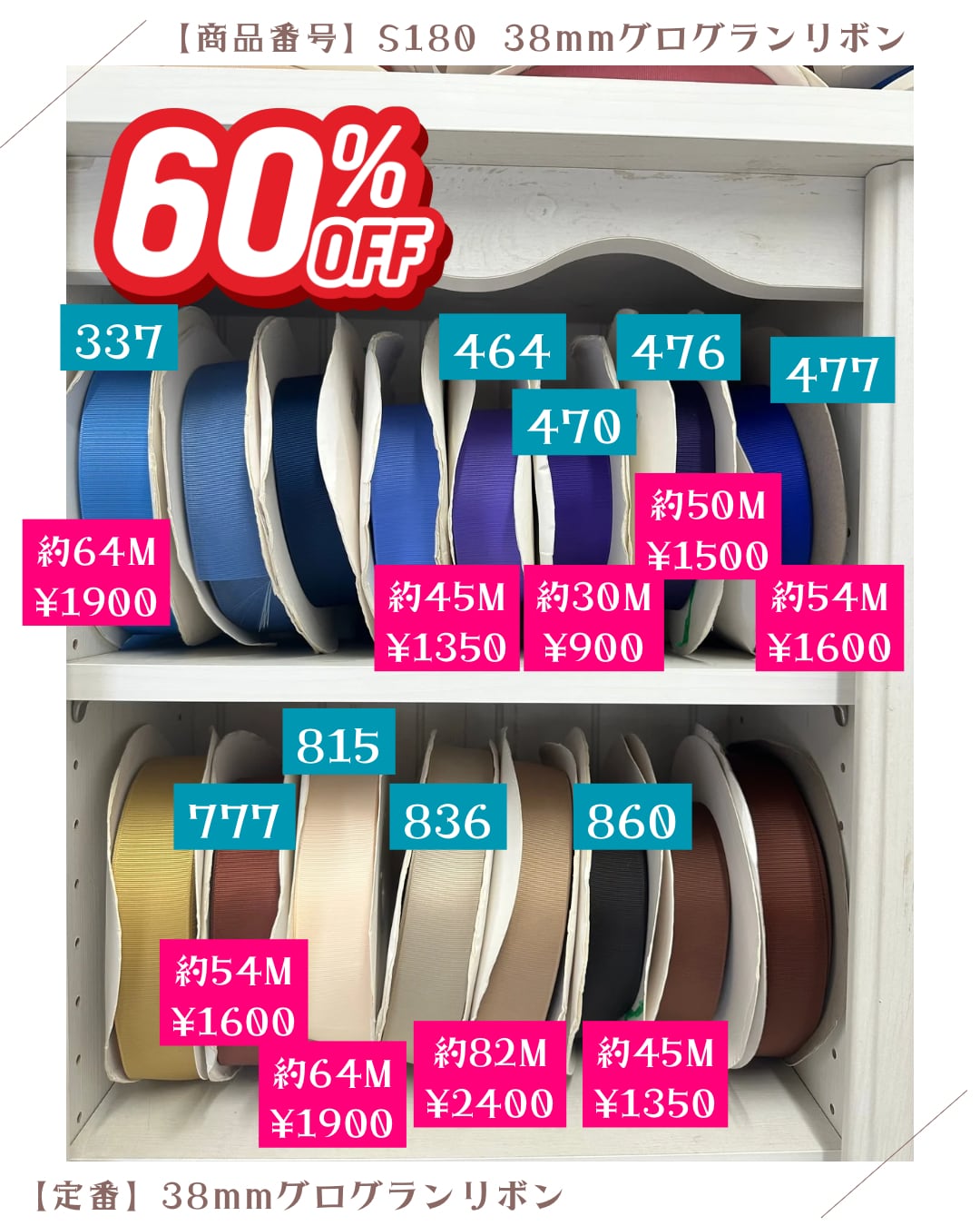 464/860【定番】38mm無地グログランリボン
