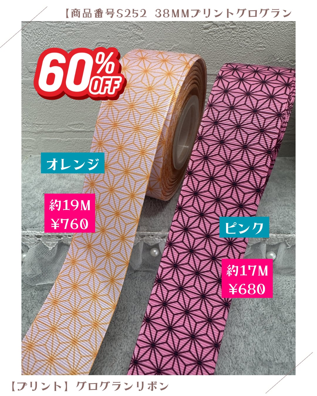 【ピンク和柄】38mmプリントグログランリボン 約17M