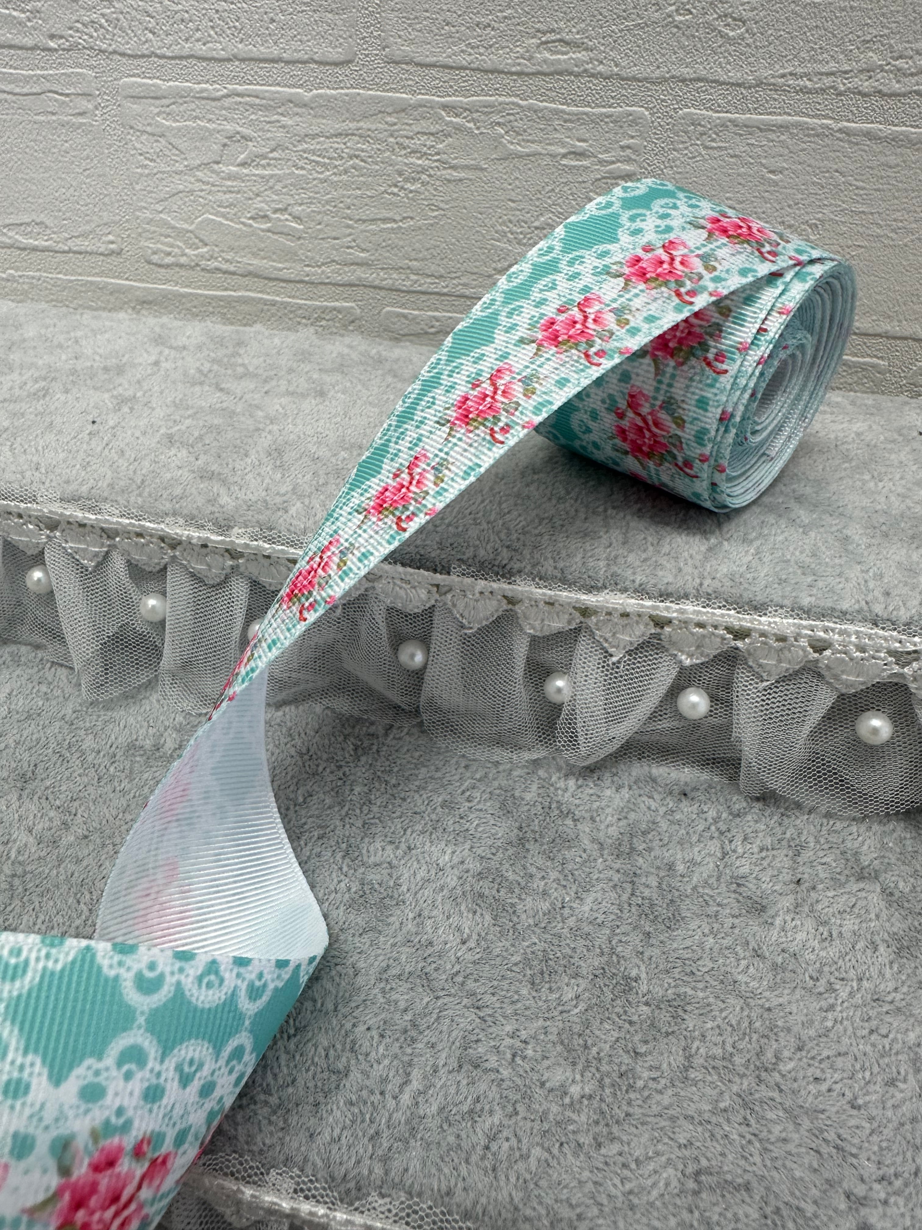 【ローズレース柄】38mmプリントグログランリボン 約5M