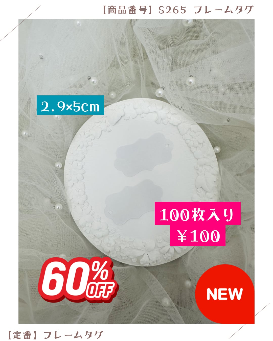 【ホワイト】アンティークフレームタグ