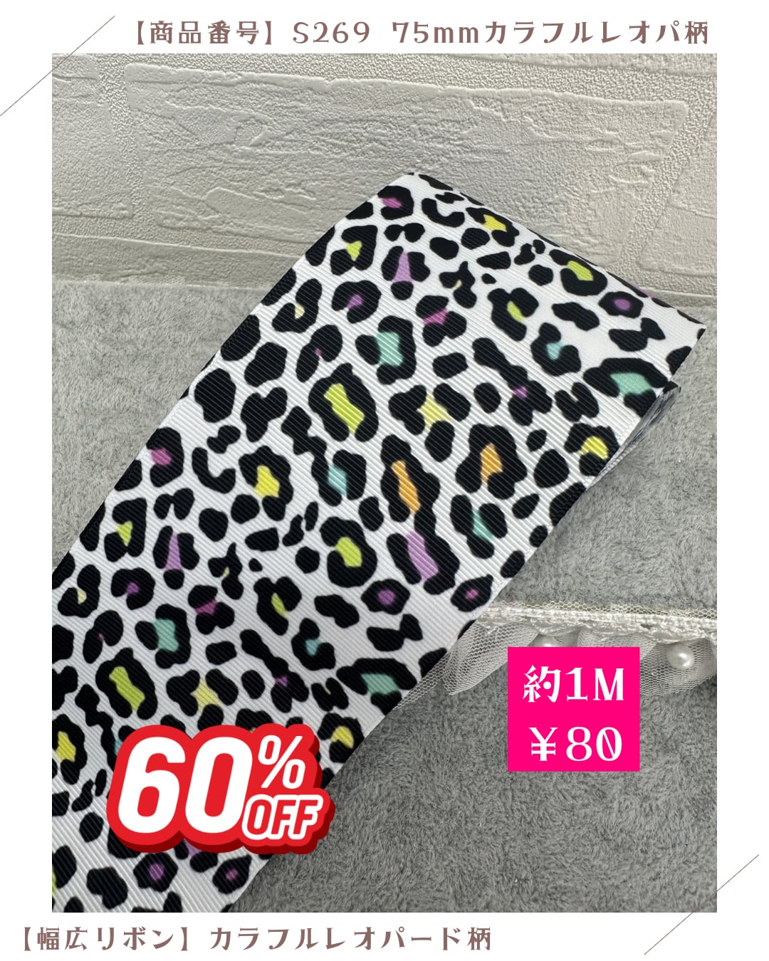 【カラフルレオパ柄】75mmグログランリボン
