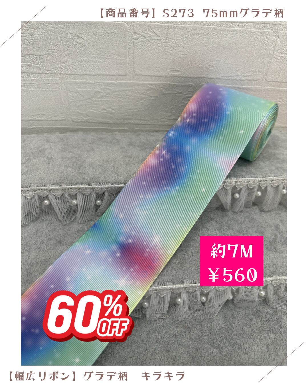 【グラデ柄キラキラ】75mmグログランリボン