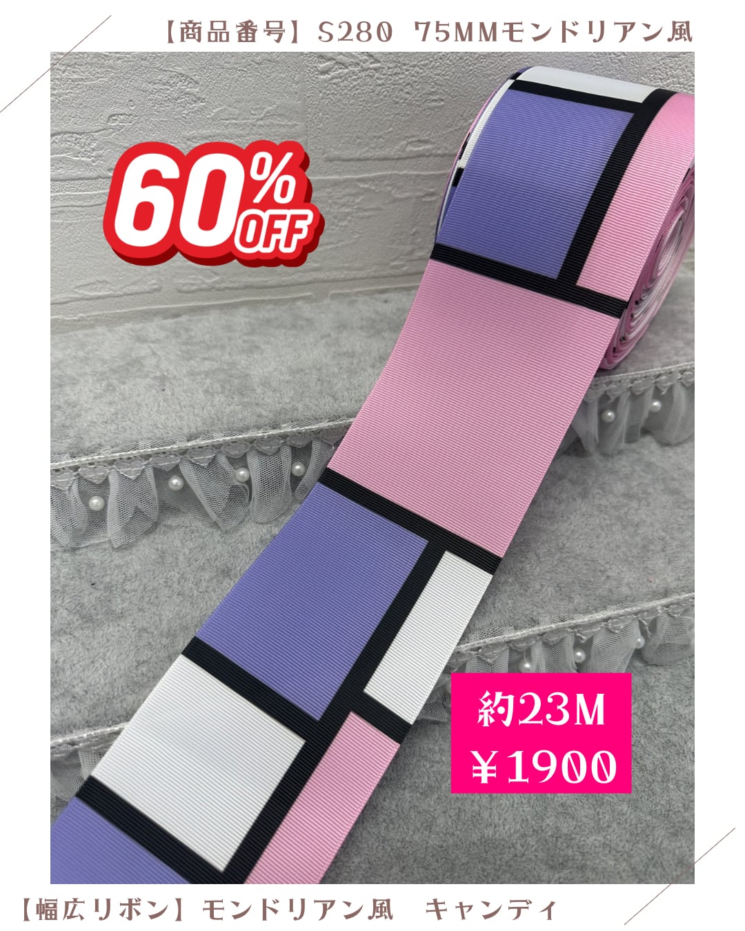 【モンドリアン風キャンディ】75mmグログランリボン