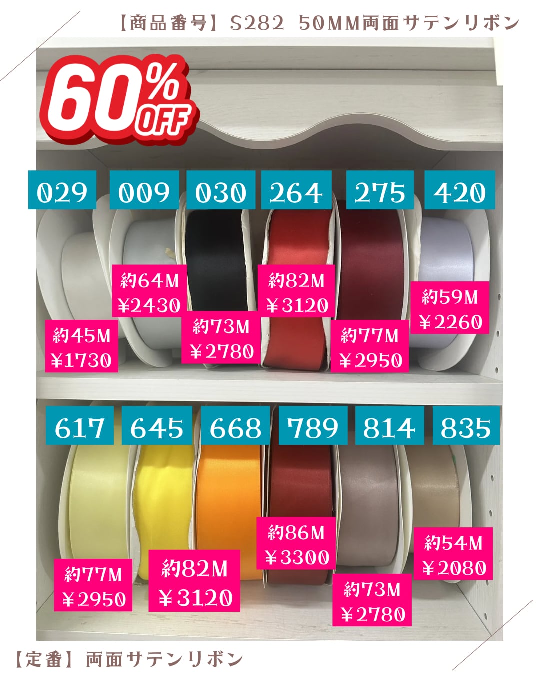 50mm 無地両面サテンリボン