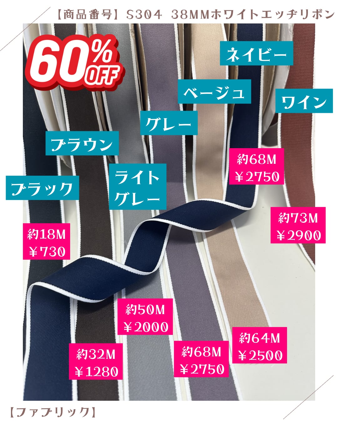 ワイン【ファブリック】38mmホワイトエッヂリボン