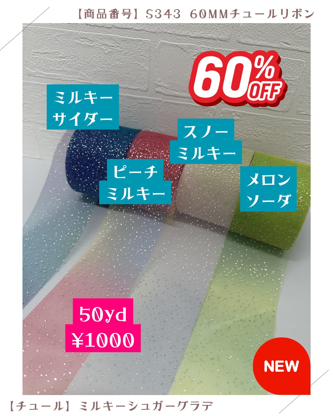 【ミルキーシュガーグラデ】60MMチュールリボン