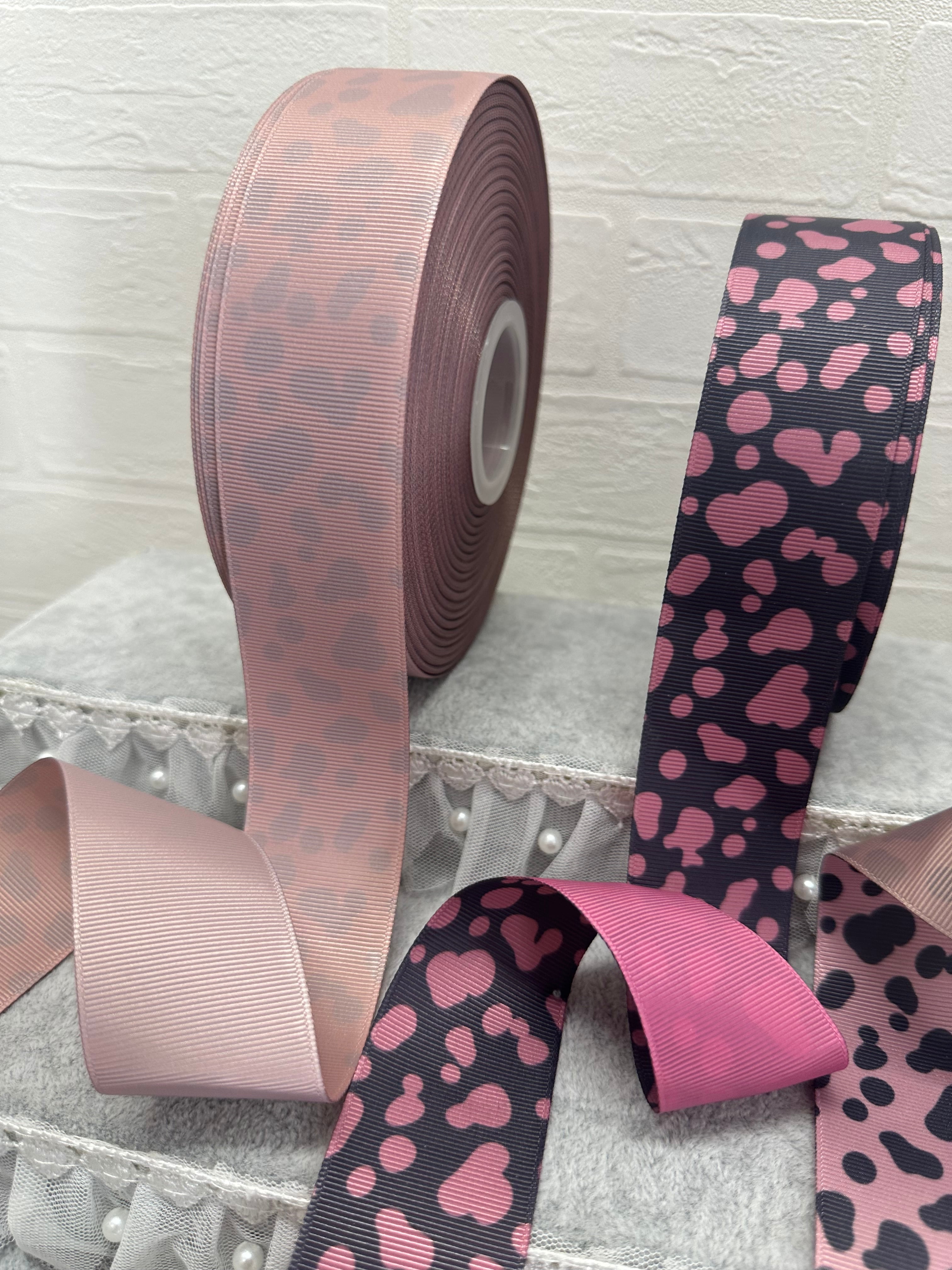 ラズベリーピンク【グログラン】38mmダルメシアンハートリボン