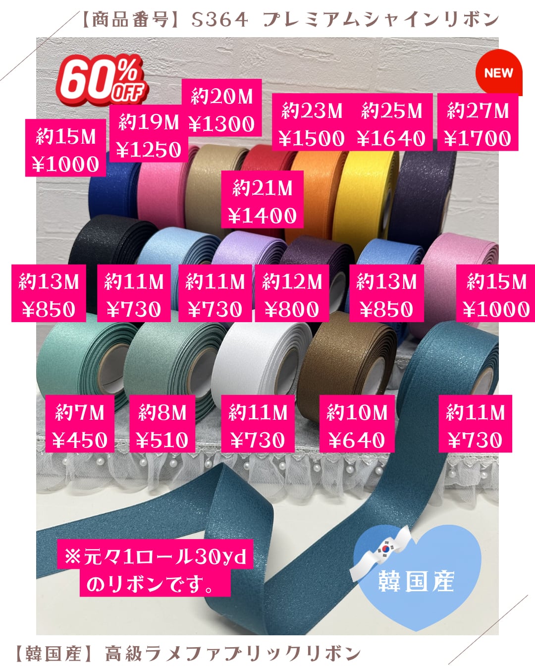 ファブリックリボンにラメを織り込んだシャインリボンです♡