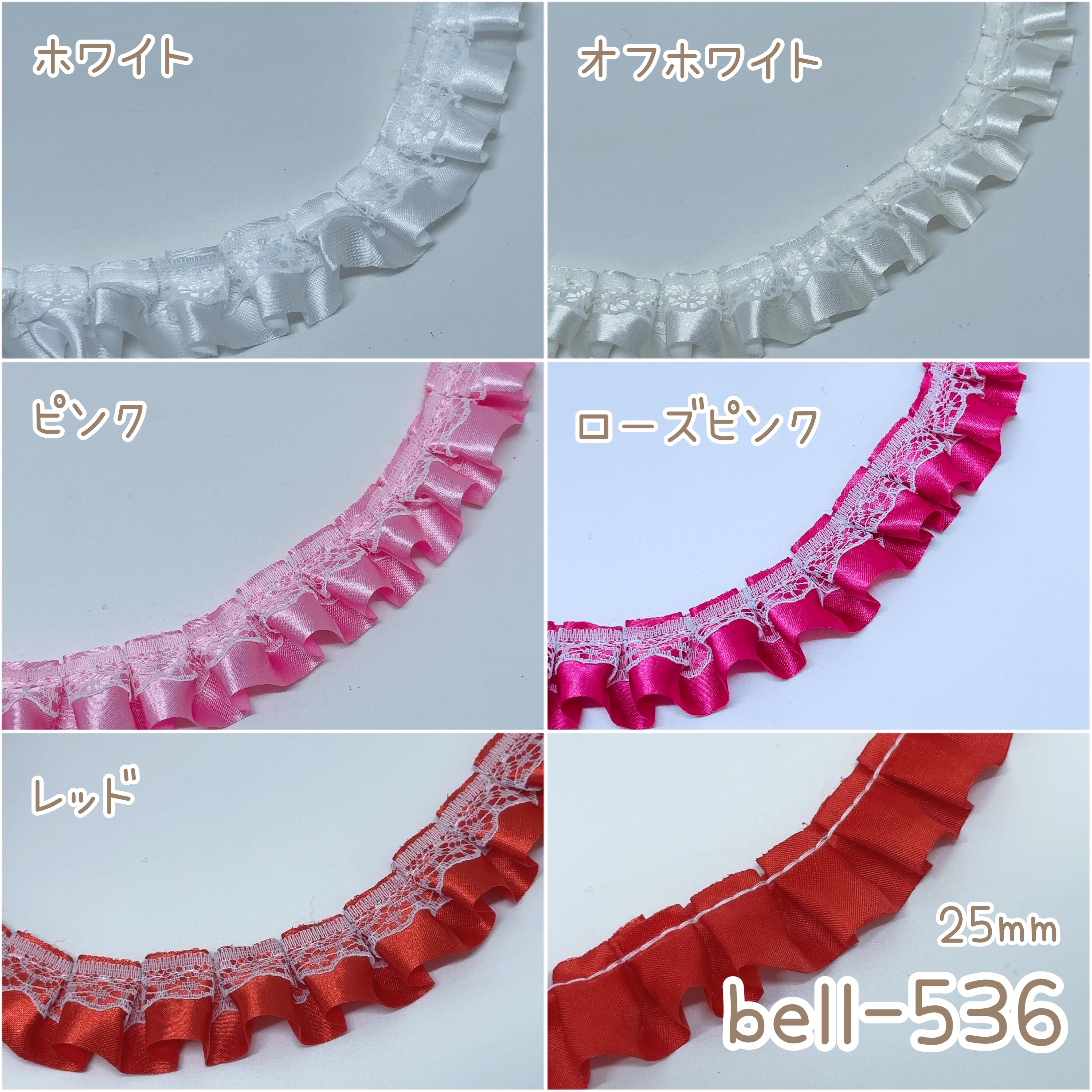 【プリーツ】25mmレース付きプリーツサテンリボン