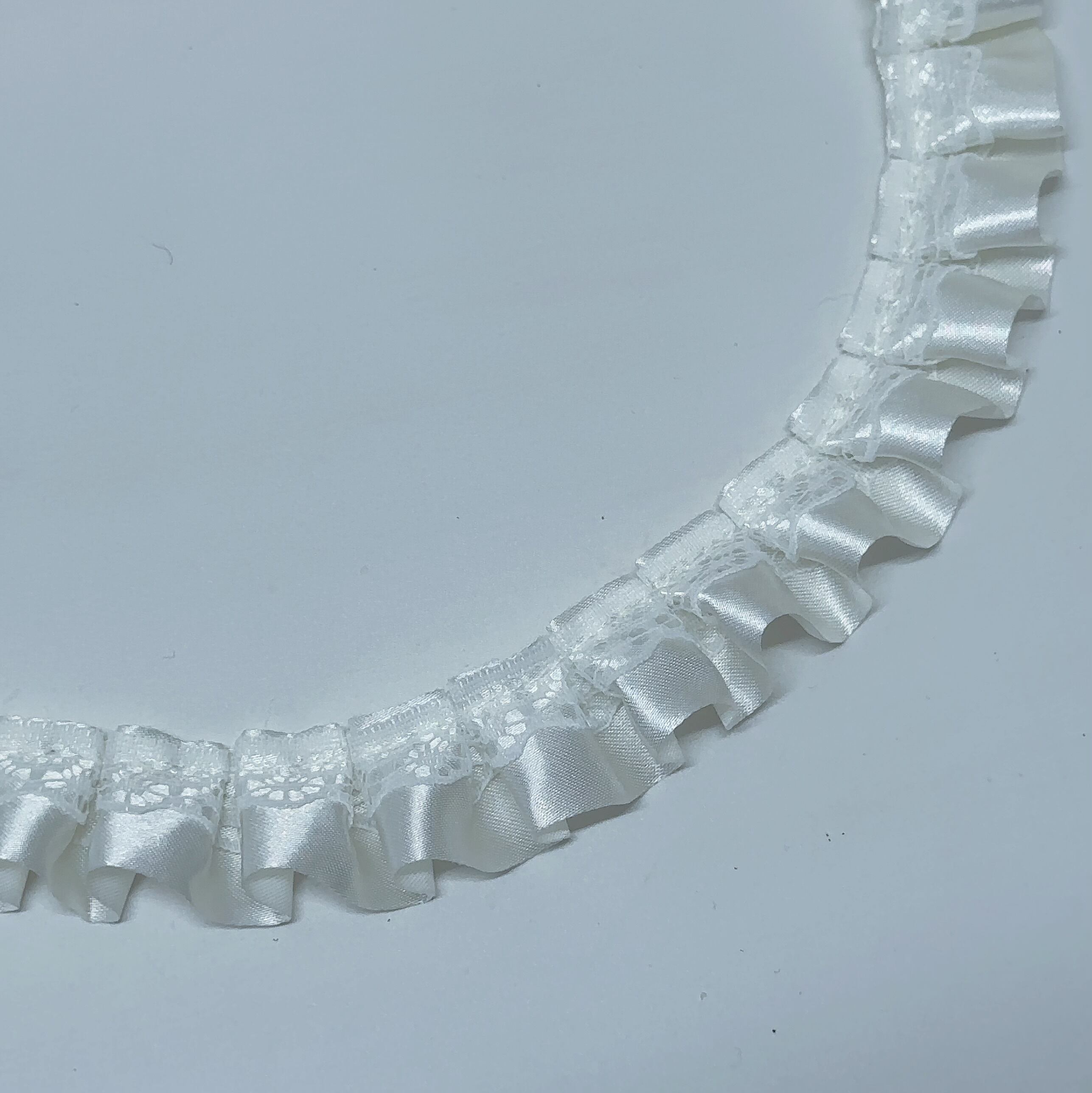 15Mオフホワイト【プリーツ】25mmレース付きプリーツサテンリボン