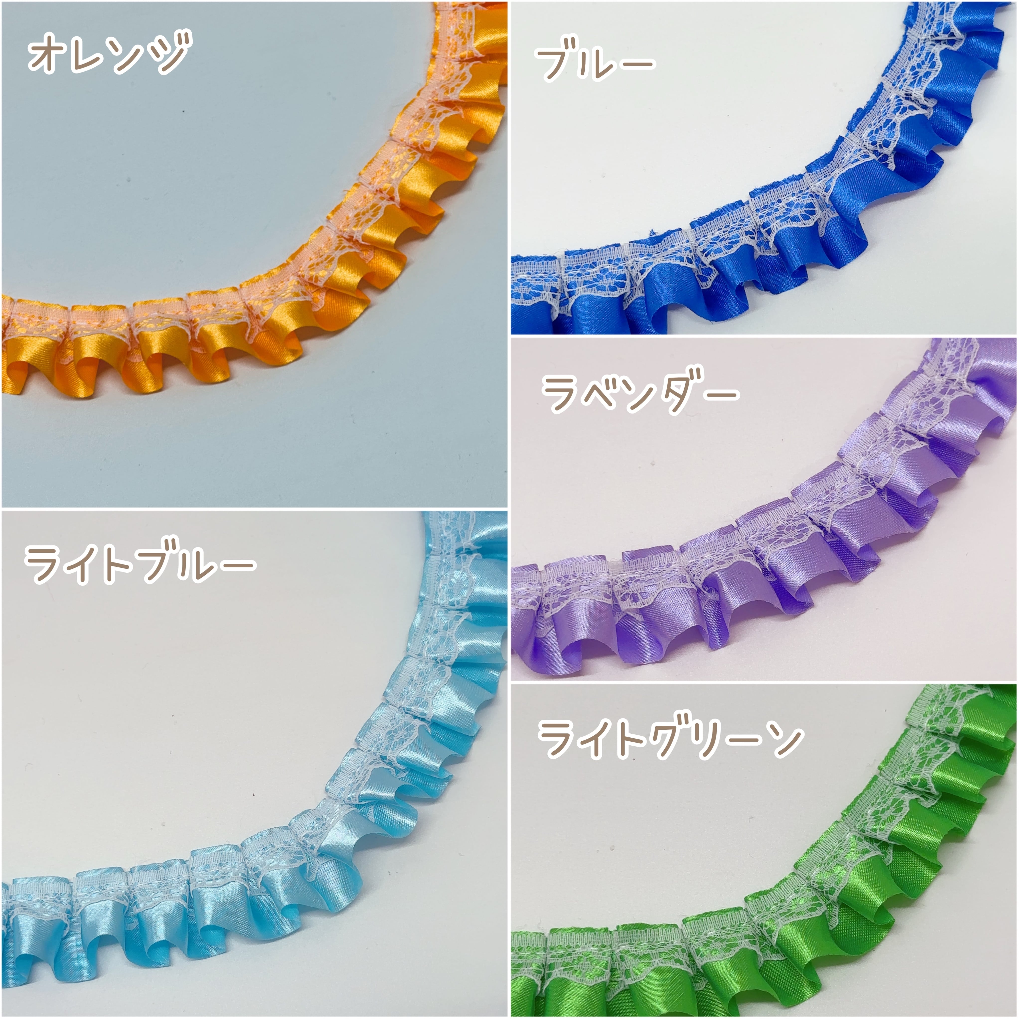 【プリーツ】25mmレース付きプリーツサテンリボン