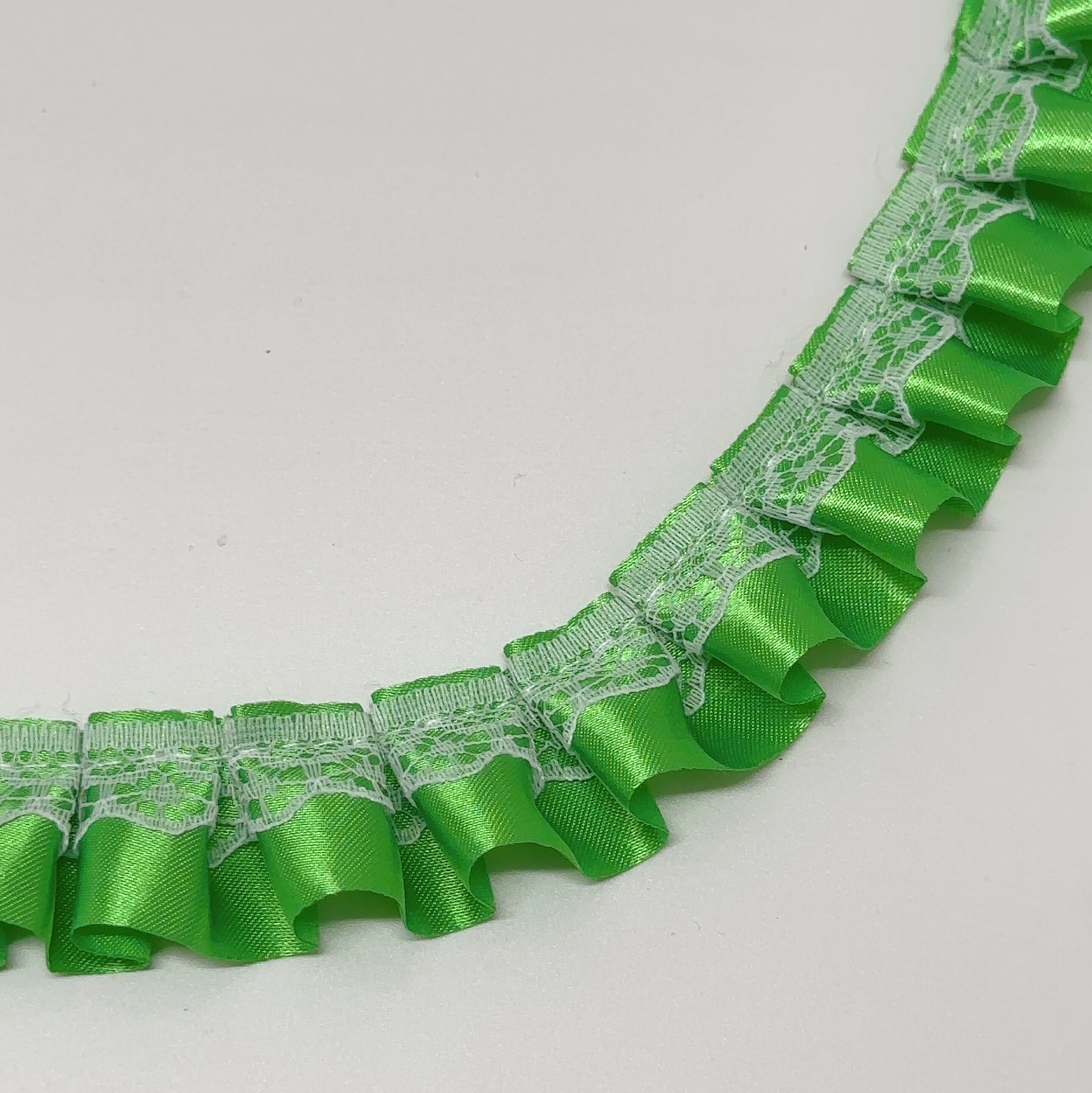 21M【プリーツ】25mmレース付きプリーツサテンリボン
