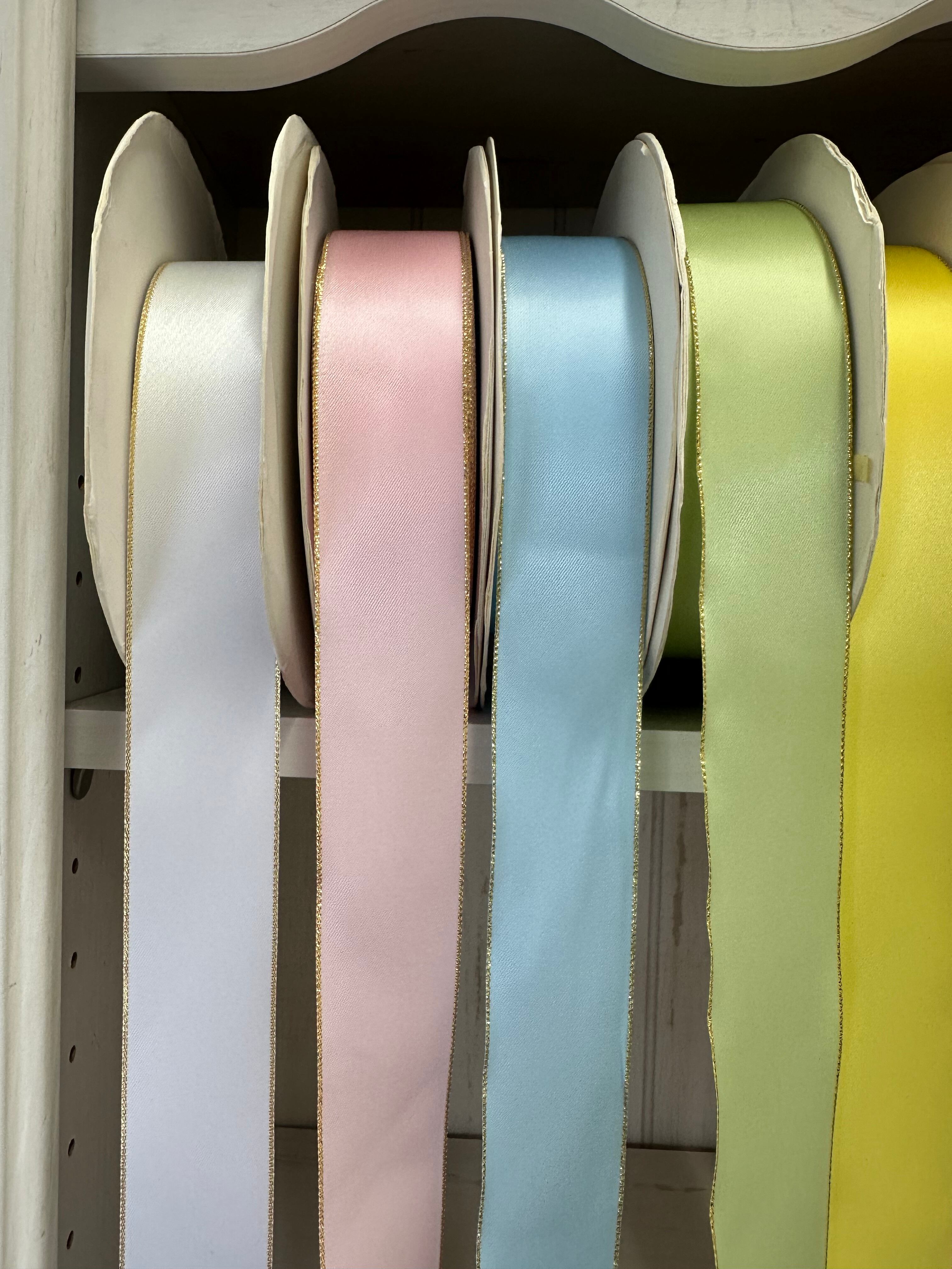 029 White【人気】38mmゴールドエッヂ両面サテンリボン