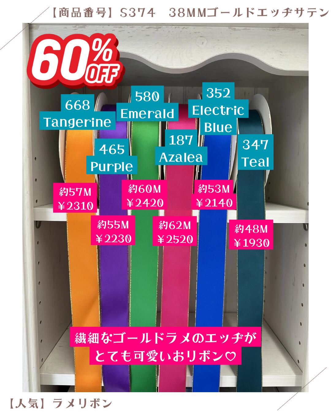 【人気】38mmゴールドエッヂ両面サテンリボン