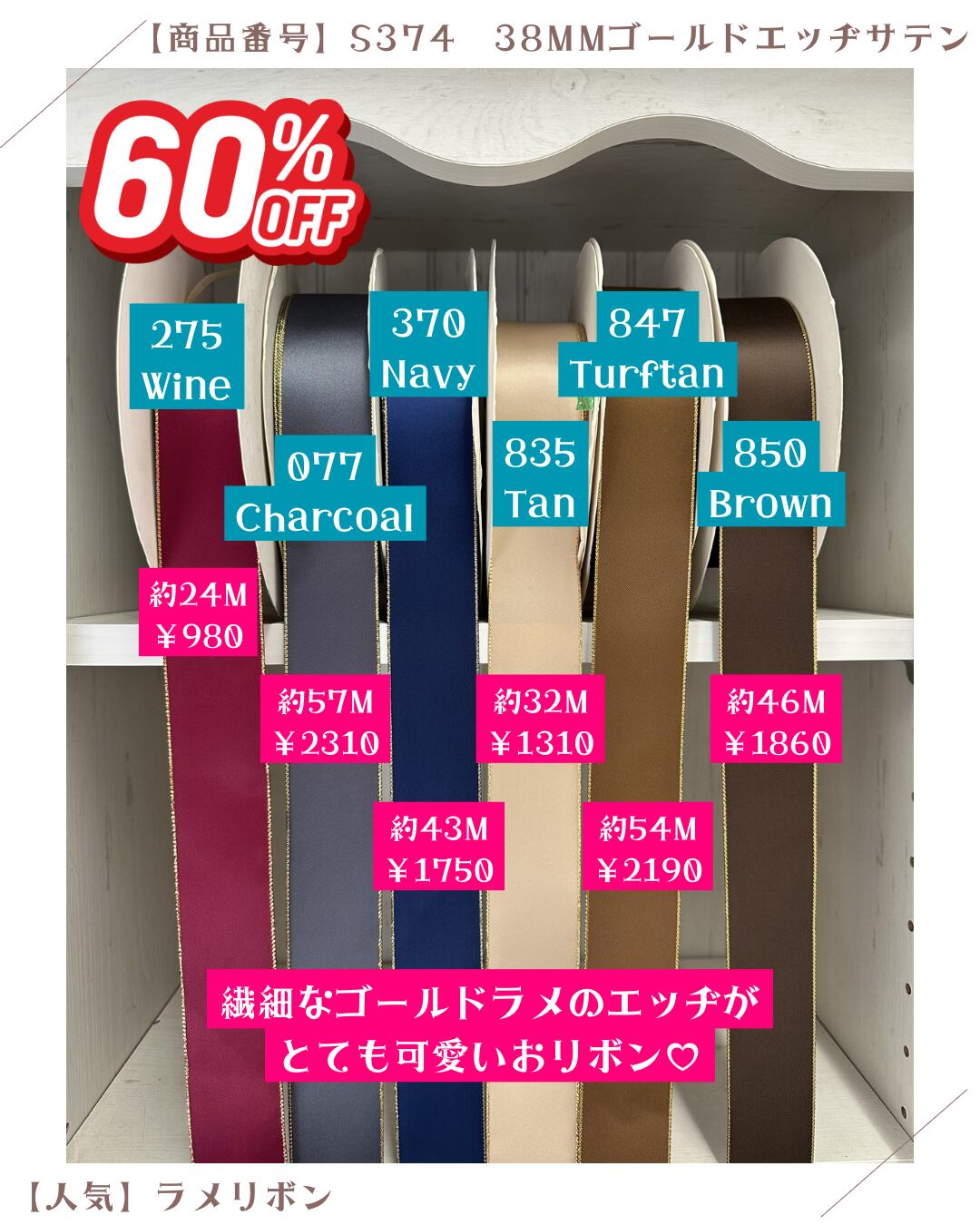 【人気】38mmゴールドエッヂ両面サテンリボン