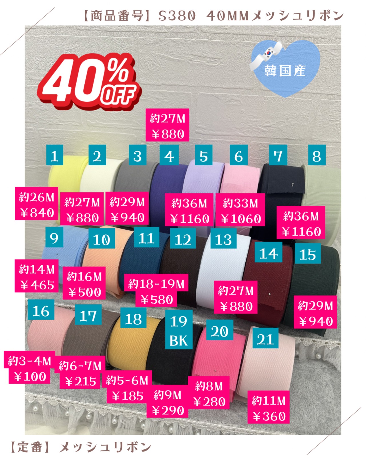 10【韓国産】40mmメッシュリボン